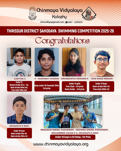 Proud moment for our young swimmers at the Thrissur District Sahodaya Swimming Competition 2025-26